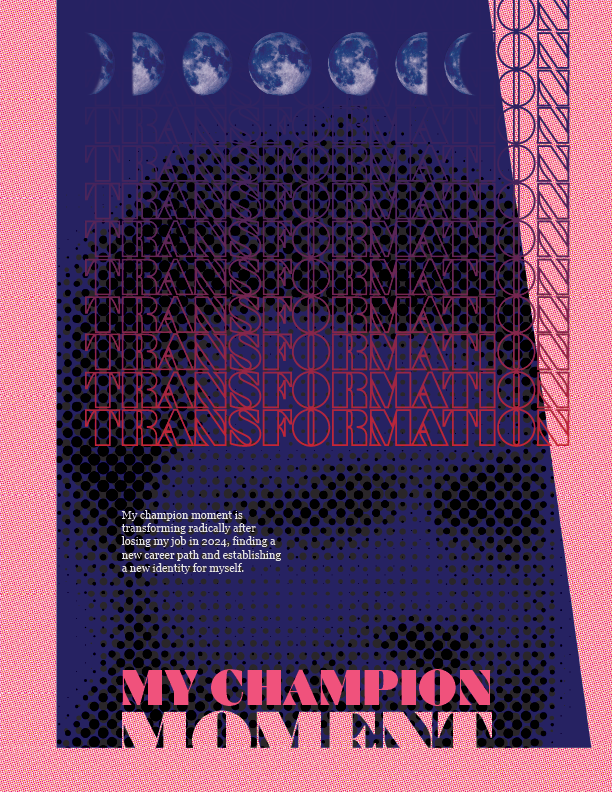 This was an autobiographer poster I designed for a job application, but Iām really proud of how it turned out. I want to incorporate symbols of transformation like the moon, and include a photo of myself but through a process of abstraction make it more mysterious and oblique.